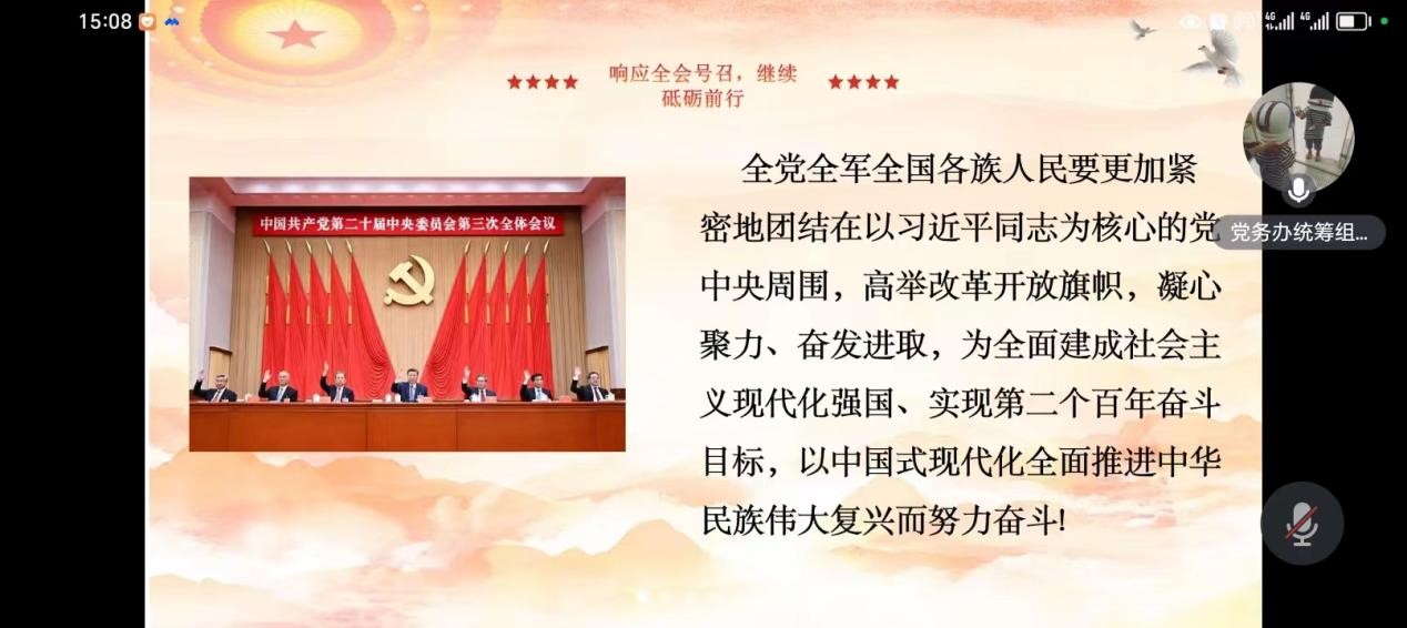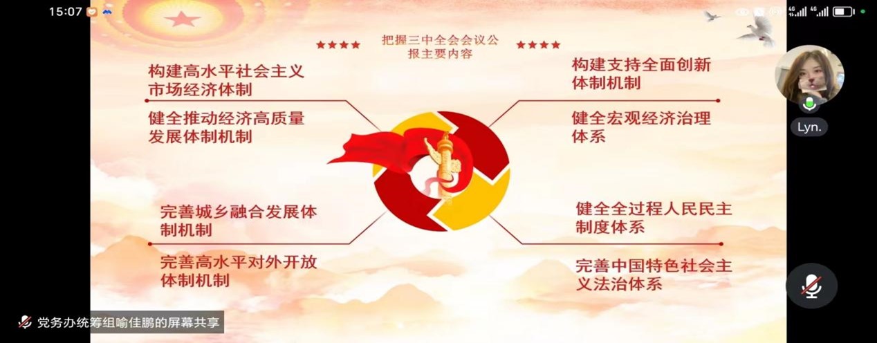 在时代的浪潮中,青年党员是那股最澎湃、最有力的力量。为了深入学习贯彻党的二十届三中全会精神,引导广大青年党员坚定理想信念,勇担时代使命,伟德国际1946学生党支部于8月15日精心策划并开展了以“改革新征程,青春勇向前——学习贯彻党的二十届三中全会精神”为主题的八月“一课”线上学习活动。此次活动由我院学生党支部书记刘艳霓老师主讲,全体学生党员和预备党员积极参与,共同掀起了一场思想的风暴和精神的革命。