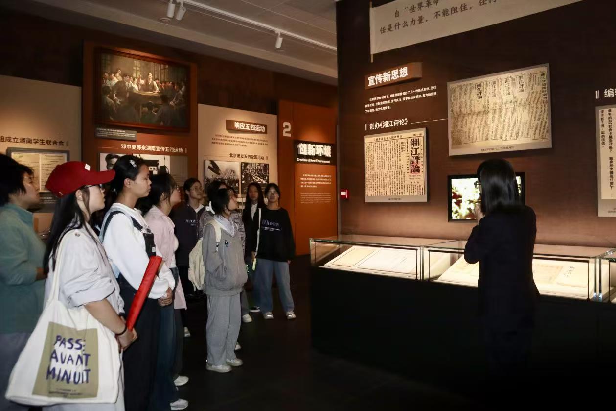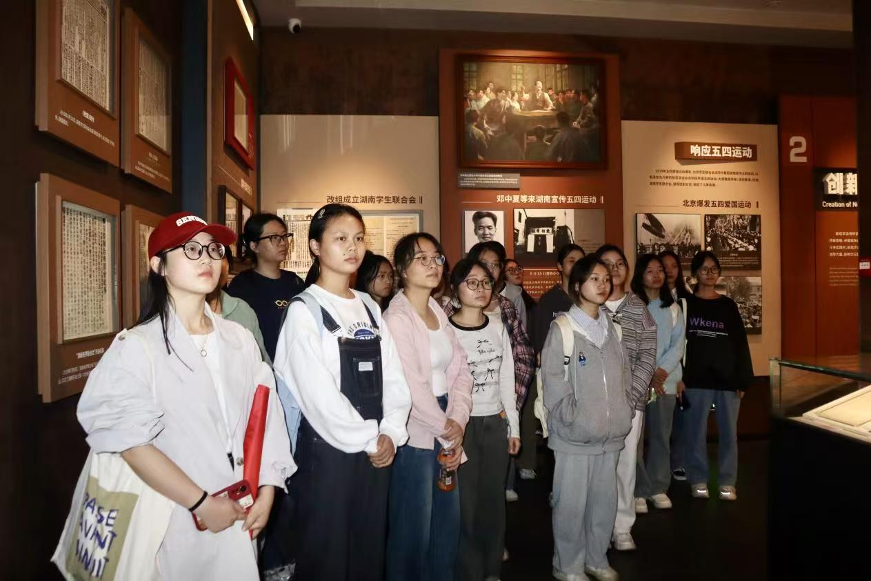 新民学会旧址,坐落于长沙市岳麓区,这里是新民主义文化运动的重要发源地,见证了那段波澜壮阔的历史进程。在讲解员的悉心引领下,全体党员踏上了一段穿越时空的参观之旅,仿佛亲身回到了那个革命风起云涌的年代。旧址的每一处细节,都仿佛在诉说着往昔的故事,学生党员们聚精会神地聆听讲解,目光紧紧锁定在历史文物与珍贵图片之上。黑白照片中,老一辈革命家们英姿飒爽,目光如炬,他们为国家命运而深深思索;展柜里,泛黄的书信手稿字迹工整有力,透露出先辈们的远大抱负与坚定信念。同学们不时驻足凝视,低声交流,从遗迹中感受先辈们的英勇事迹,阅读那些激昂的文字,体会国家危难之际的牺牲与奋斗。他们以一种专注而认真的态度,与先辈进行了一场跨越时空的心灵对话,从而更加坚定了自己的理想信念与奉献精神。