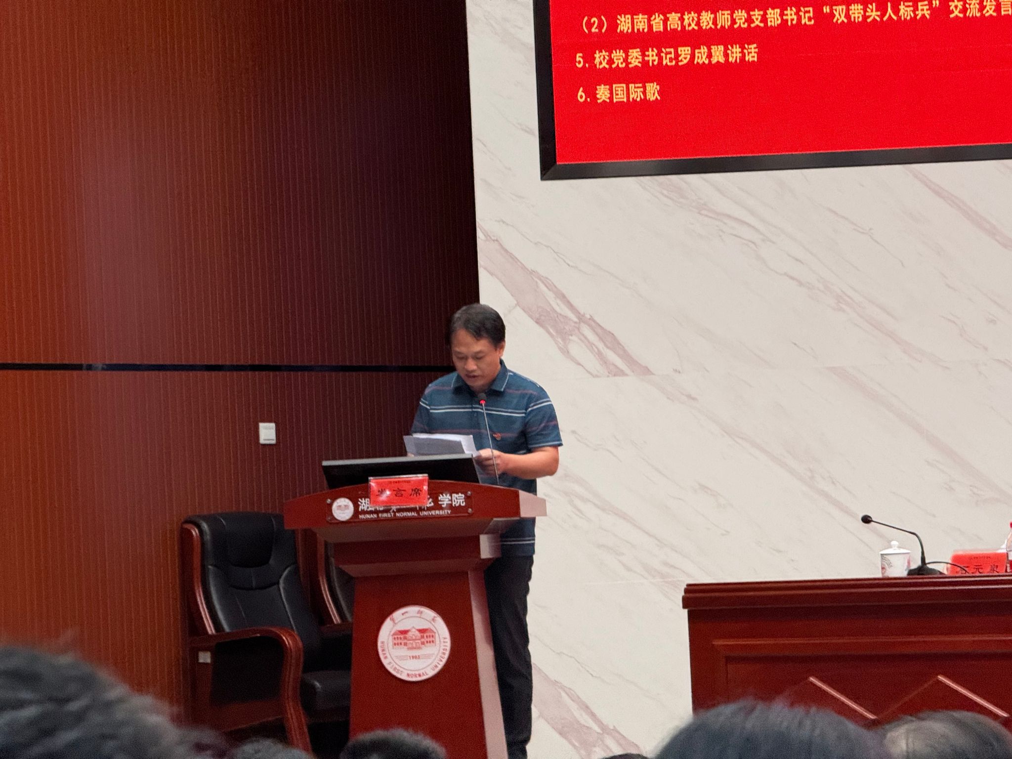 会上,曾玉华作为湖南省党建“样板支部”获奖代表进行交流发言,详细介绍了学院以“党建 +”引擎驱动推进“五高”建设的具体举措和显著成绩。其一,“党建 + 高水平专业”,学院扛牢政治责任担当,不断深化专业内涵建设,牢牢把住政治引领“方向盘”。其二,“党建 + 高品质课程”,积极落实学校党委“一馆三线六课” 大思政课品牌打造,大力推进“大思政”视域下大中小学思政课一体化建设,打造具有一师特色的实践教学体系,充分用好红色资源“活教材”。其三,“党建 + 高素质教师”,夯实组织基础广揽英才,充分发挥党员先锋模范作用,严格抓好新时代师德师风建设,有效激活队伍建设“动力源”。其四,“党建 + 高质量成果”,通过举办红色学术活动、开展红色学术研究、建立红色学术平台,积极对接学科前沿“新高地”。其五,“党建 + 高效能育人”,深入推进综合改革,落实本科教育教学改革意见“30”条,坚持思政课建设与党的创新理论武装同步推进,构建“1+X”思政课程体系,切实抓好培养质量“生命线”。