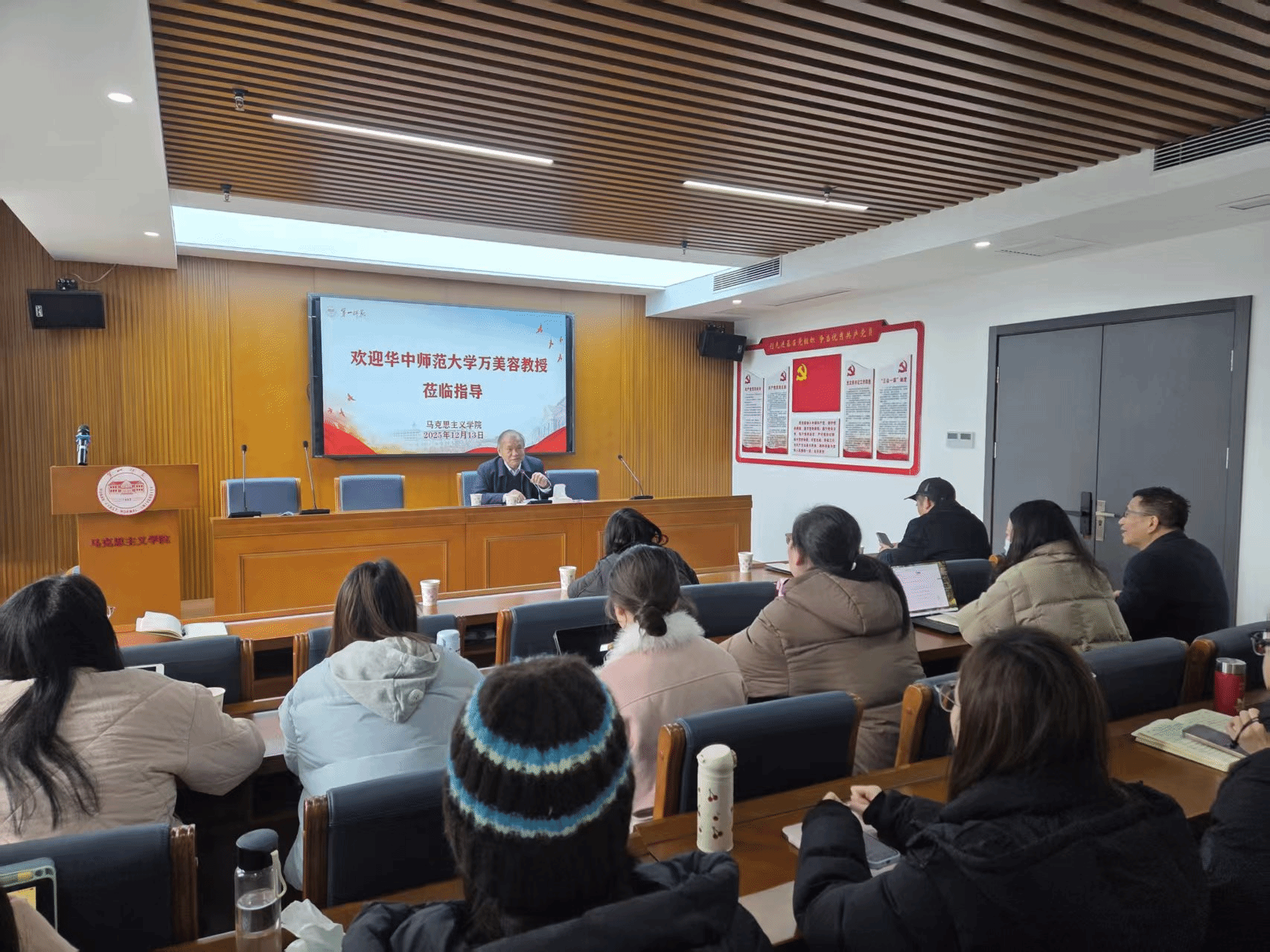 为深入推进马克思主义理论学科建设,进一步提升硕士研究生培养质量,12月13日上午,学院特邀国务院学位委员会学科评议组成员、华中师范大学伟德国际1946原院长、博士生导师万美容教授来院,就学科建设与高级别项目申报工作进行指导交流。座谈会由院长陈明教授主持,副院长王竹苗、二级教授贺汉魂、数学与统计学院党委书记阮东彪以及研究生代表共40余人参加。