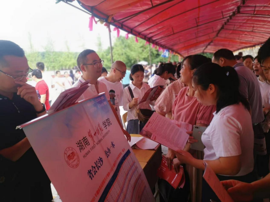 招生宣传是学校延揽一流人才的重要途径。今年6月以来,在招生就业处的统筹安排下,我院教师胡慧娥、吴承富、于澎、刘艳霓在学院党委书记阮东彪的带领下深入长沙、邵阳5所优质中学开展形式多样的招生宣传活动。老师们穿着招生宣传文化衫,带着精美的招生宣传资料、招生宣传纪念品,开展招生宣传。