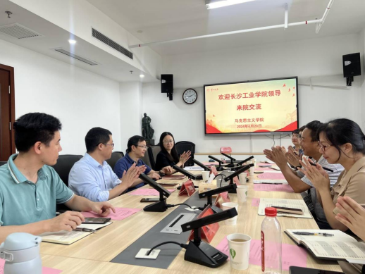 6月20日上午,长沙工业学院思政课教学组谭必翰一行来我院考察交流。交流会由我院副院长王竹苗主持,全体教研室主任参会。