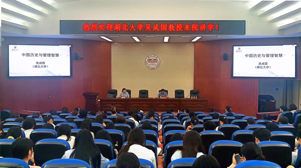 吴成国教授的讲座内容精彩纷呈,主要从四个方面展开。第一,管理者在历史中的重要性,中国历史上对“用人”的深刻认识;第二,事前计划的重要性,中国历史上对“计划”的重视程度;第三,领导在管理中的核心作用,中国历史上对“统一性”的强调;第四,关于控制的艺术,中国历史上对总结经验教训的独到见解。吴成国教授深刻指出,在复杂纷繁、变化多端的历史大舞台上,时刻都在上演着兴亡盛衰的悲喜剧。而国学的管理智慧是一座富矿,学史可以看成败、鉴得失、知兴替;学诗可以情飞扬、志高昂、人灵秀;学伦理可以知廉耻、懂荣辱、辨是非。学习国学管理智慧,不仅为我们个人的各项管理工作提供智力支撑,更是一项传承和弘扬中华优秀传统文化的极富意义的活动。