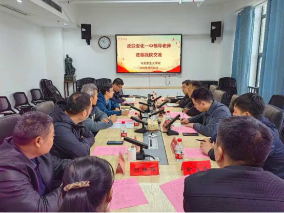 为深入贯彻党的教育方针,进一步加强和改进新时代学校思想政治教育,推动大中小学思政一体化建设进程,11月20日,安化一中党委书记、校长聂可相率队,携同相关处室人员来我院考察,就如何有效实施大中小思政一体化建设进行了深入交流与探讨。
