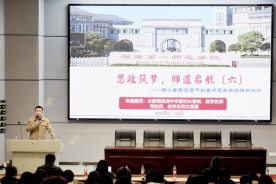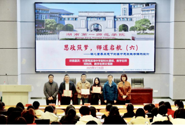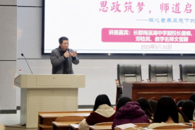 3月31日晚上7点,我院于东方红校区怀中南110教室开展了第六次“思政筑梦,师道启航”主题讲座。长郡梅溪湖中学副校长唐頔,教学名师邓检民和文雪颖受邀主讲,我院陈明院长,胡英副书记,王竹苗副院长出席,22级思政1-4班、24级思政5班本科生以及24级学科思政研究生参加。