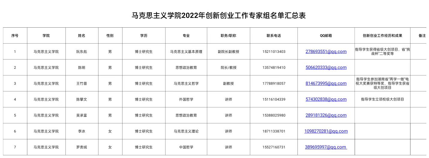 “大学生创新创业专家组”人员构成: