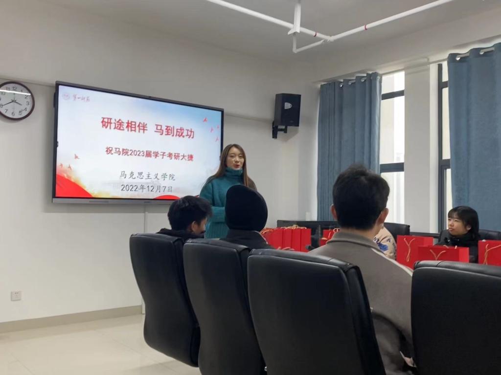 刘艳霓老师也为同学们送上了祝福,考研的路并非轻而易举,需要有明确的目标,具备挑战困难的勇气、艰苦奋斗的毅力、耐住寂寞的定力和永不放弃的决心,这样才可能达到成功的彼岸。她表示学院领导和老师都十分关心同学们备考期间的学习和生活情况,也一定会提供力所能及的支持和帮助,学院就是同学们的坚强后盾。