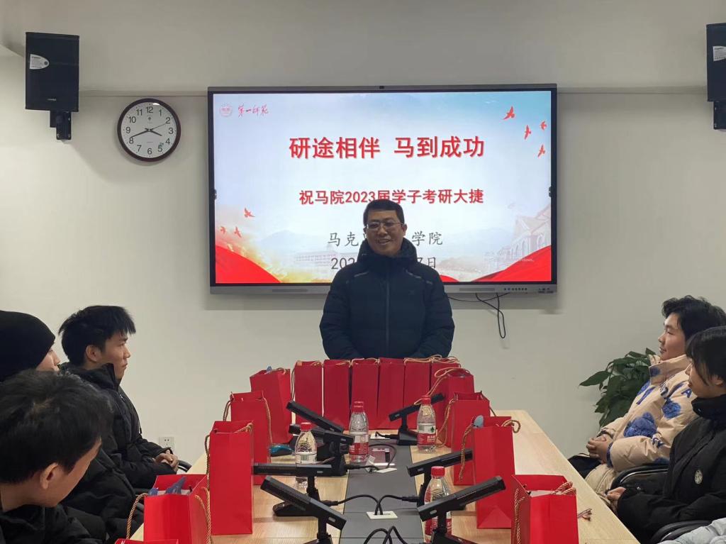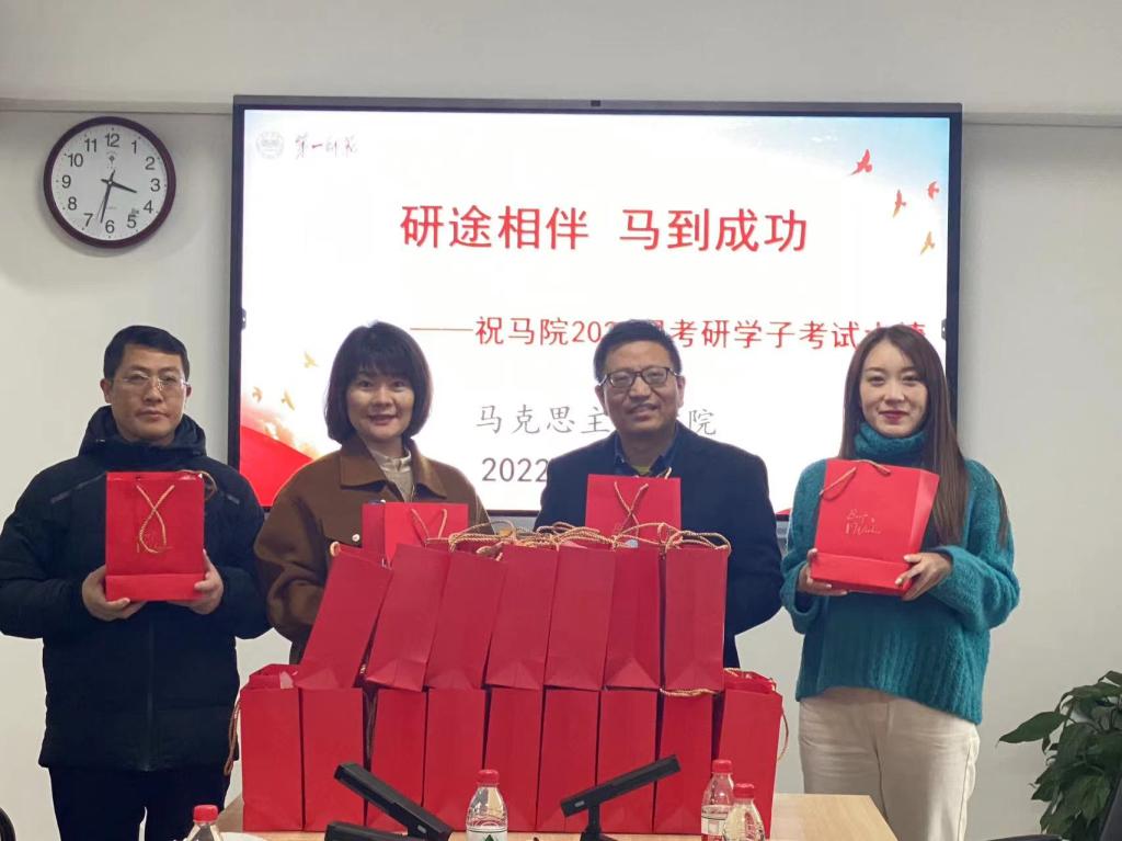 随后,老师们将精心准备的“考研暖心礼包”一一派送到同学们手中,鼓励同学们在最后冲刺阶段,科学复习,提高效率,劳逸结合,加强锻炼,保持良好的迎考心态。