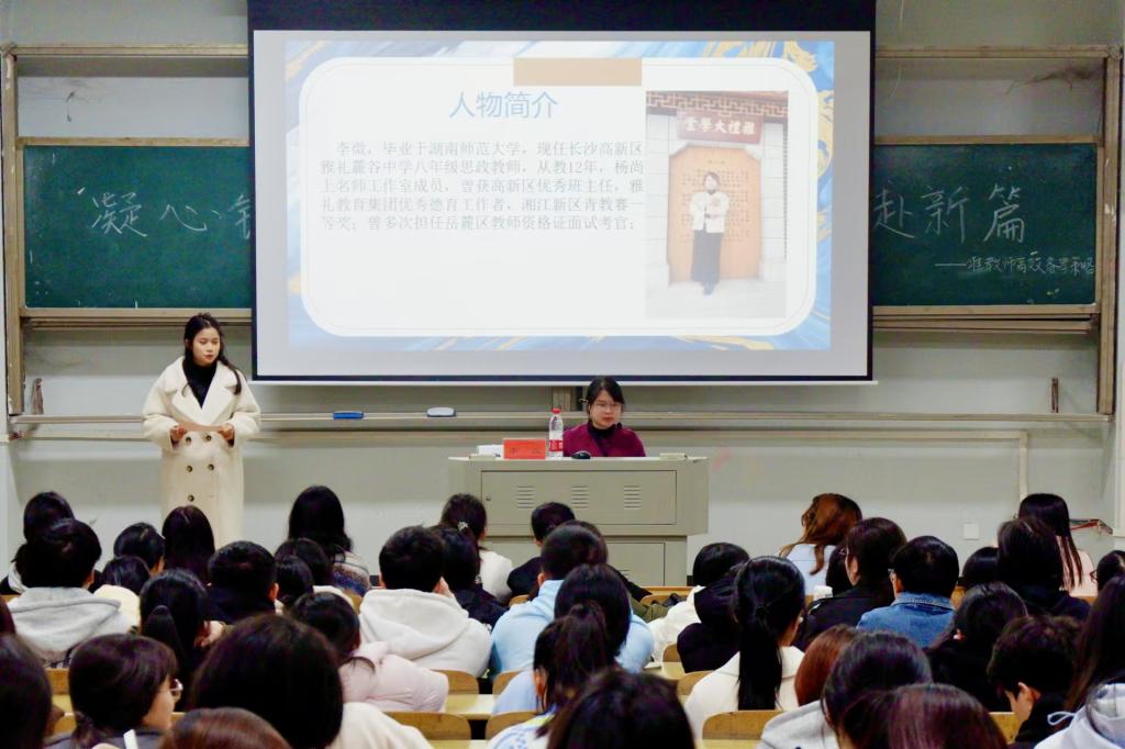 为迎接即将来临的教资面试,给考生提供专业指导与实用技巧,11月19日晚七点,伟德国际1946于怀中南107报告厅成功举办了以“凝心铸魂育新人,筑梦前行赴新篇”为主题的准教师高效备考策略讲座。此次讲座特邀长沙高新区雅礼麓谷中学思政课教师李微担任主讲人。