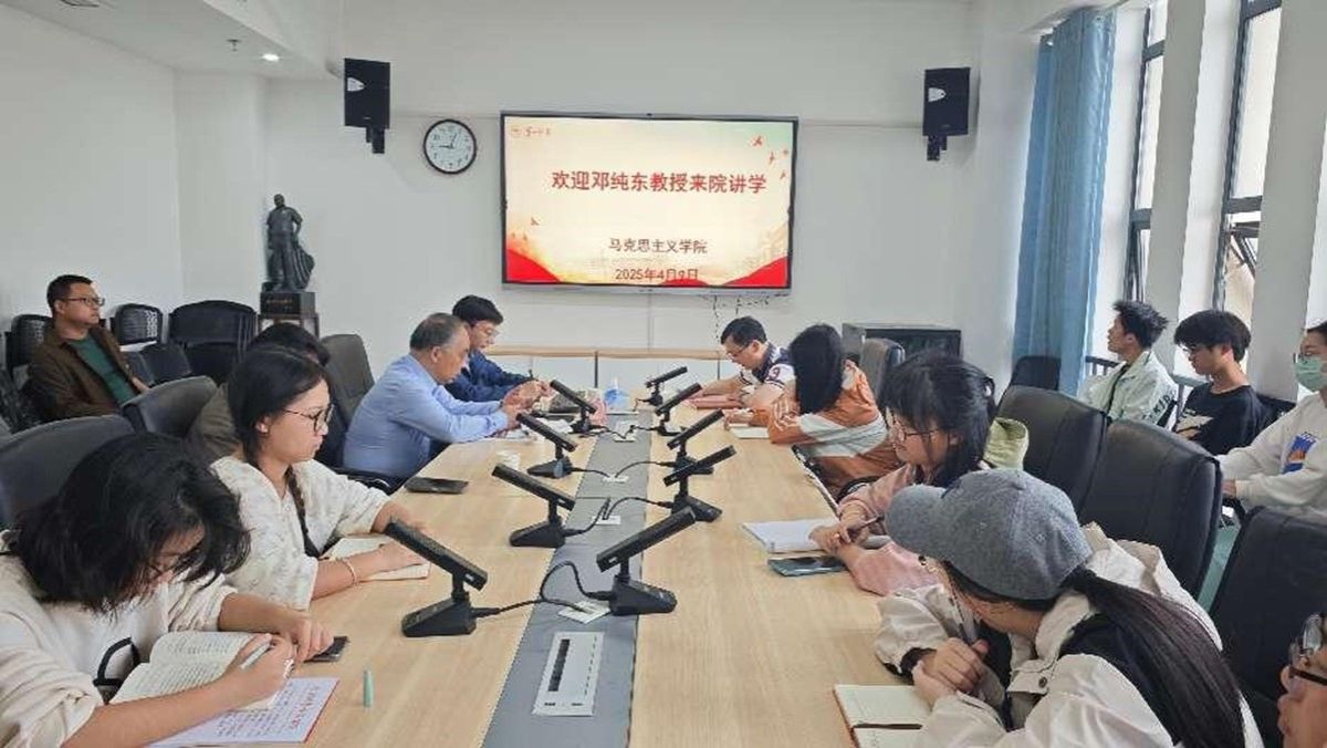 2025年4月9日上午,中国社会科学院大学邓纯东教授应邀来我院开展题为“全面深化改革中坚持以人民为中心的必然要求”的学术讲座。讲座在百熙楼1010会议室举行,由我院院长陈明教授主持,贺汉魂、刘喆、杨杰等教师代表以及我院三十余位研究生、本科生代表参与学习。
