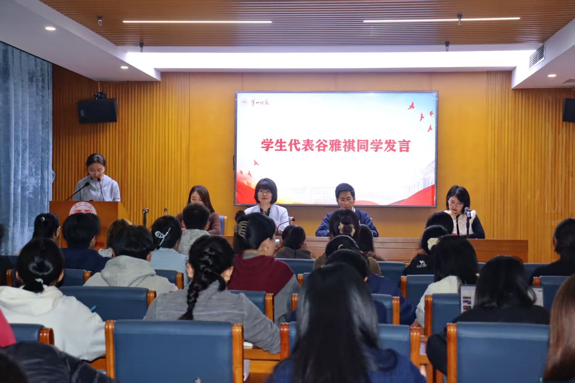 分团委学生副书记谷雅琪作为优秀学员代表,分享了自己参加青马培训的成长感悟。结合实践经历,她讲述了“在理论学习中深化认知、在实践锻炼中锤炼本领”的心路历程:“‘青马工程’不仅让我系统掌握了马克思主义理论精髓,更教会我以理论指导实践、在实践中深化理解。”她勉励新学员胸怀“国之大者”,将个人理想融入民族复兴伟业,在青春赛道上奋力跑出优异成绩。