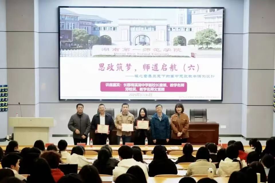 王竹苗副院长在总结中高度评价三位专家“将教材语言转化为教学语言、将理论逻辑转化为生活逻辑”的专业能力,代表学院向长郡梅溪湖中学长期以来的支持致谢,并展望双方在“大思政课”建设、师范生培养等领域的深度合作前景。论坛尾声,陈明院长向主讲嘉宾颁发荣誉证书,并合影留念。