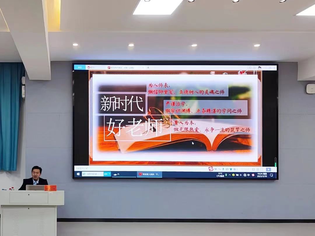 陈书记以习近平总书记的讲话为导入,围绕“如何成为一名优秀的人民教师”,从三个方面深入浅出地展开讲座。
