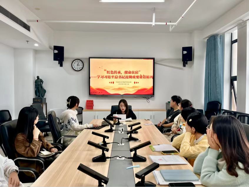 为引导广大学生党员重温红色历史、感悟思想伟力,凝聚奋进力量,扛起时代使命,10月14日,我院学生党支部于百熙楼1010会议室组织开展了“红色传承,使命在肩”主题活动。本次党课由学生党支部书记刘艳霓主讲,全体学生党员、预备党员参与。