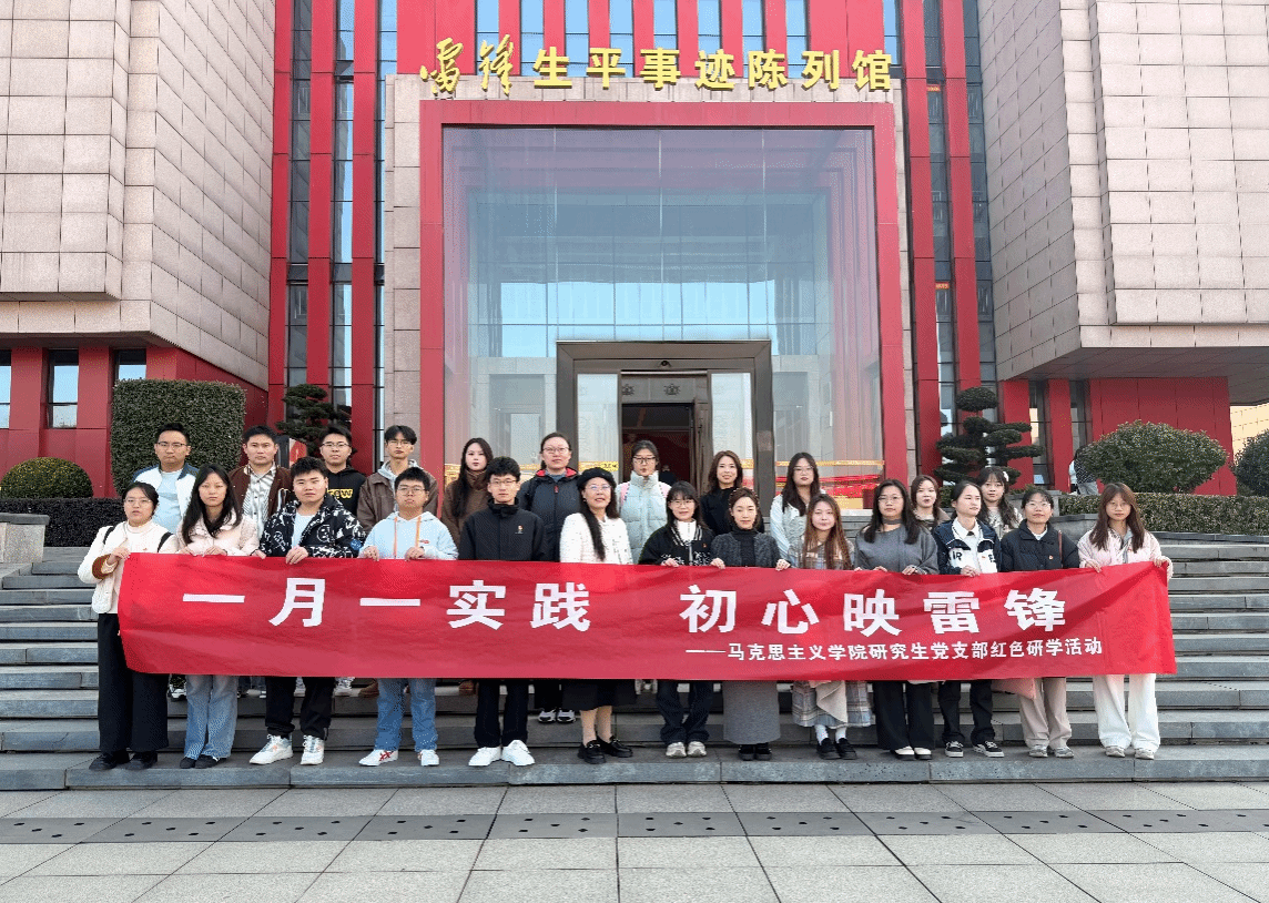 参观过程中,党员和积极分子们认真聆听、仔细记录,不时围绕理论契合点展开即时交流,沉浸式的学习让大家对雷锋精神与马克思主义理论的内在联系有了更深刻的认知。参观结束后,匡艳结合研学内容作总结讲话。她强调,雷锋精神不是抽象的道德符号,而是马克思主义理论在当代中国的生动实践结晶,与马理论学科的核心要义一脉相承。她要求全体党员同志和积极分子:一要强化理论溯源,深入研究雷锋精神与马克思主义立场、观点、方法的内在联系,将其融入课程学习和学术研究,形成兼具理论深度与实践价值的研究成果;二要突出学科特色,马理论专业研究生需聚焦雷锋精神的时代转化与创新发展,学科思政专业研究生要探索其融入思政课堂、校园文化、社会实践的有效路径;三要注重实践转化,把雷锋精神体现到学术科研、志愿服务、集体生活的方方面面,以“螺丝钉”的坚守、“傻子”的奉献、“钉子”的钻研,践行新时代青年党员的责任担当。