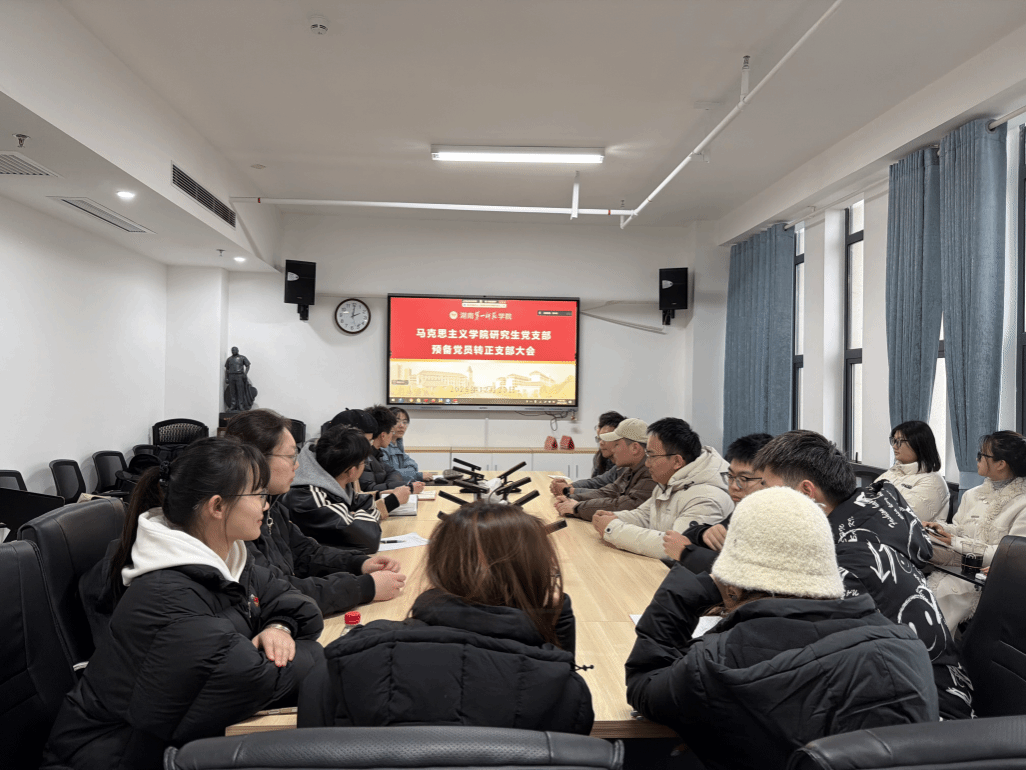 12月23日,我院研究生党支部在百熙楼1010会议室隆重召开预备党员转正支部大会,并同步开展12月“一月一课一片”集中学习活动。支部全体正式党员、预备党员、发展对象及入党积极分子现场参会,会议严格遵循既定议程有序推进,氛围庄重而热烈。