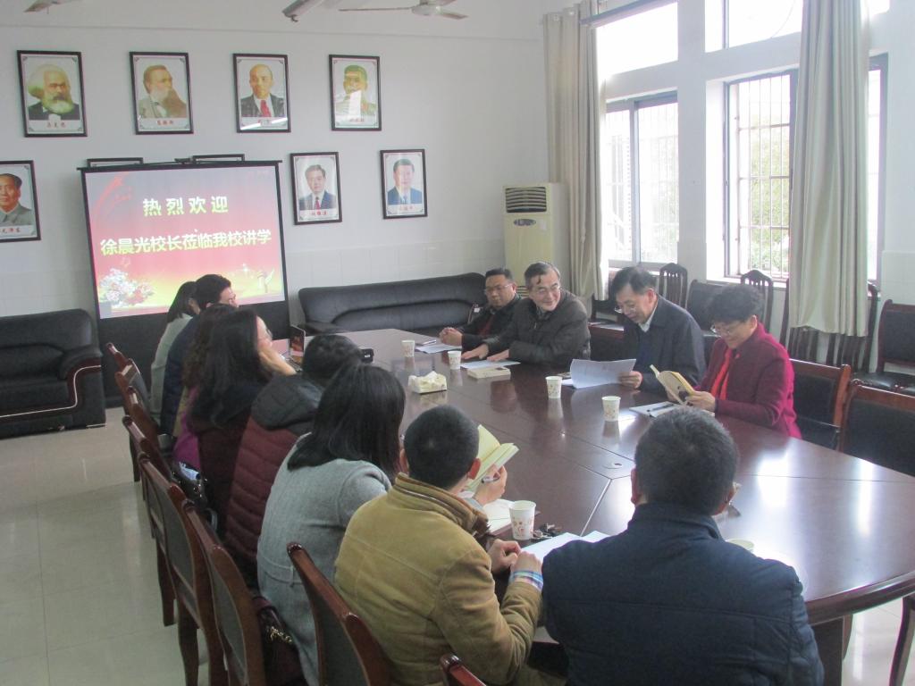 讲座前,副校长曹兴、学校纪委书记李昱热烈欢迎徐晨光教授。徐教授为学校、学院捐赠了他的著作《晨光心语》。讲座后,学校党委书记彭小奇教授会见徐晨光教授。(阮东彪供稿)
