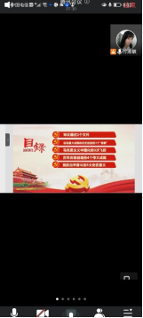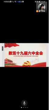 本次线上学习十九届六中全会精神,学生党支部书记付淑敏首先传达学院党委学习贯彻落实党的十九届六中全会精神。她通过一连串的数字带领大家学习了党的十九届六中全会精神,从以下九个方面阐述:全会审议通过2个文件;总结重大成就和历史经验的3个“需要”;马克思主义中国化的3次飞跃;百年历程创造的4个伟大成就;党的百年奋斗的5大历史意义;党的百年奋斗的10大历史经验;党的十八大以来13方面的重要成就;全党4个必须和党中央的1个号召。