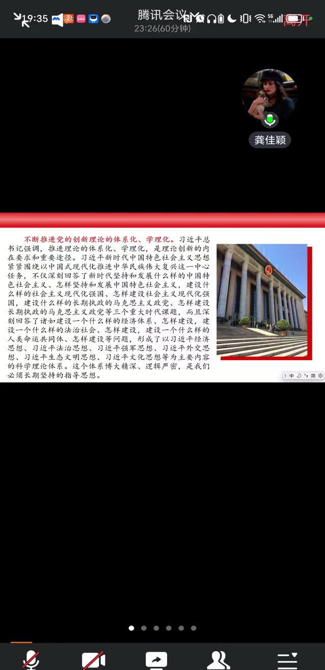 为深入学习贯彻习近平总书记关于党的建设重要思想,12月10日,我院学生党支部组织全体学生党员、预备党员以及发展对象,利用线上会议平台开展了以“思想建党、理论强党”为主题的党课活动。本次活动由学生党支部副书记龚佳颖同志领学。