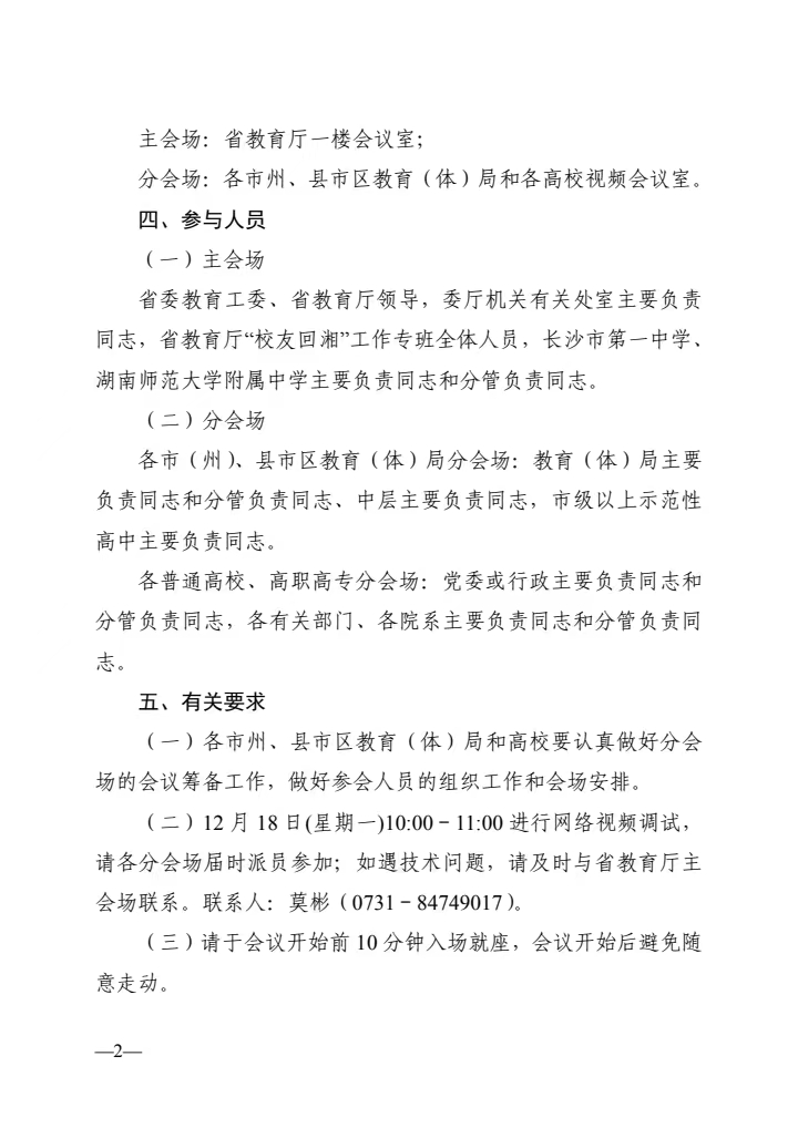 关于召开推进“校友回湘”工作全省教育系统内部通气会的通知