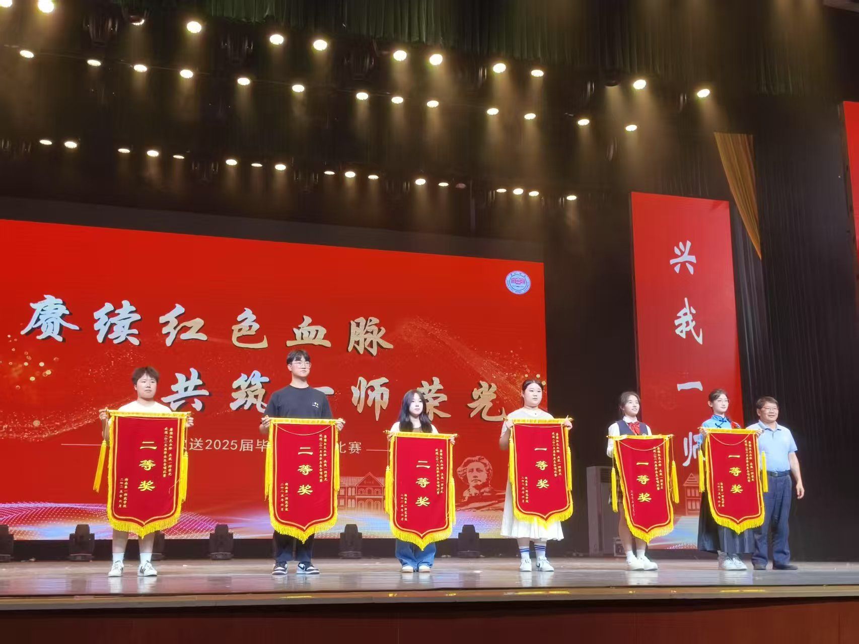 热烈祝贺!在"赓续红色血脉 共筑一师荣光"欢送2025届毕业生合唱比赛中,我院学子以激昂的歌声、真挚的情感和精湛的舞台表现力,从14个参赛学院中脱颖而出,斩获二等奖(第六名)!
