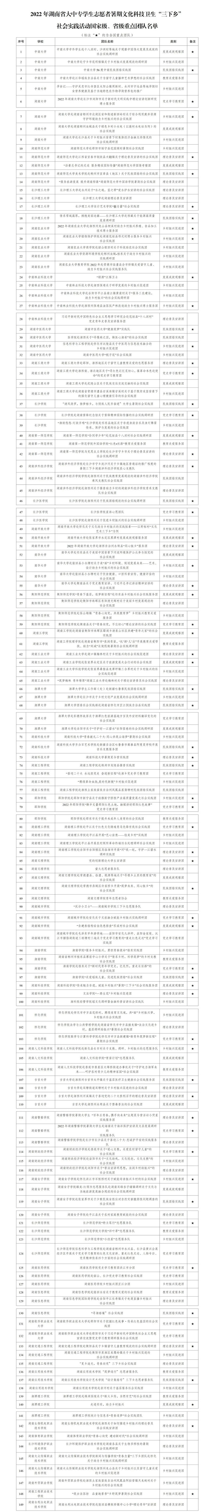2022年湖南省大中专学生志愿者暑期文化科技卫生“三下乡”社会实践活动国家级、省级重点团队名单