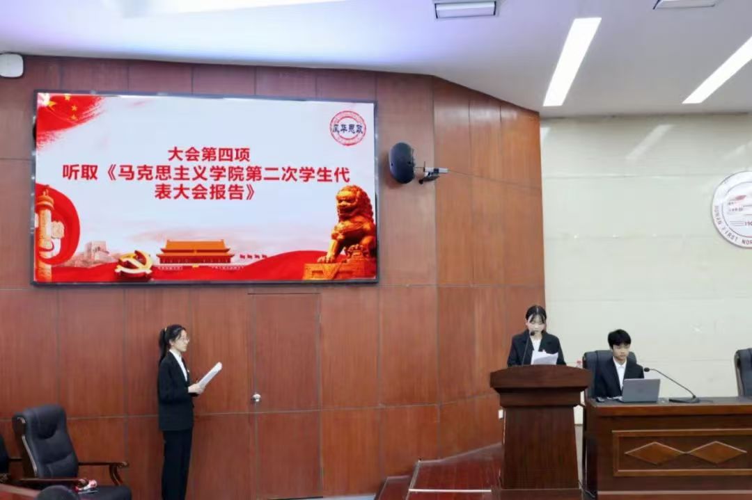 大会即将开始,全体同学奏唱国歌,第一次全体会议于下午15:30准时开始。会议伊始,院党委副书记胡英宣读批复,并热烈祝贺大会召开。随后,校学生会宣读批复。最后,袁雅琴代表伟德国际19462023-2024学年学生会作了以“在建设特色鲜明的师范大学进程中凝聚佳‘马’力量 赓续时代华章”为主题的工作报告。报告回顾过去一学年学生会工作,对未来的工作部署作出蓝图规划。