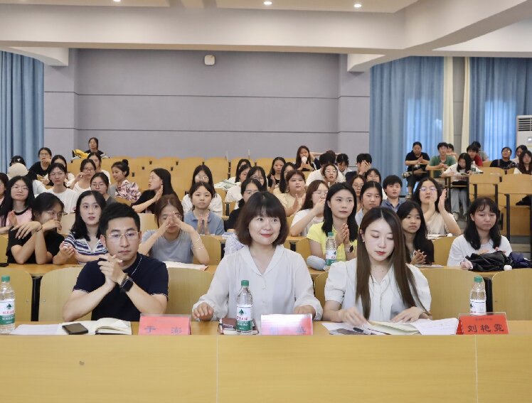 新干部任职仪式上,于澎老师宣读2024-2025届学生干部名单,并向他们表示祝贺,随后,三位老师上台为新一届的学生干部颁发聘书并合影留念。最后,分团委学生副书记蒋京素和学生会主席团轮值主席袁雅琴上台发表就职宣言。她们在发言中总结过往、展望未来,并代表全体学生干部郑重表态,将秉持服务同学、奉献校园的宗旨,以身作则,积极进取,为学院的繁荣发展和同学们的成长进步贡献自己的力量。