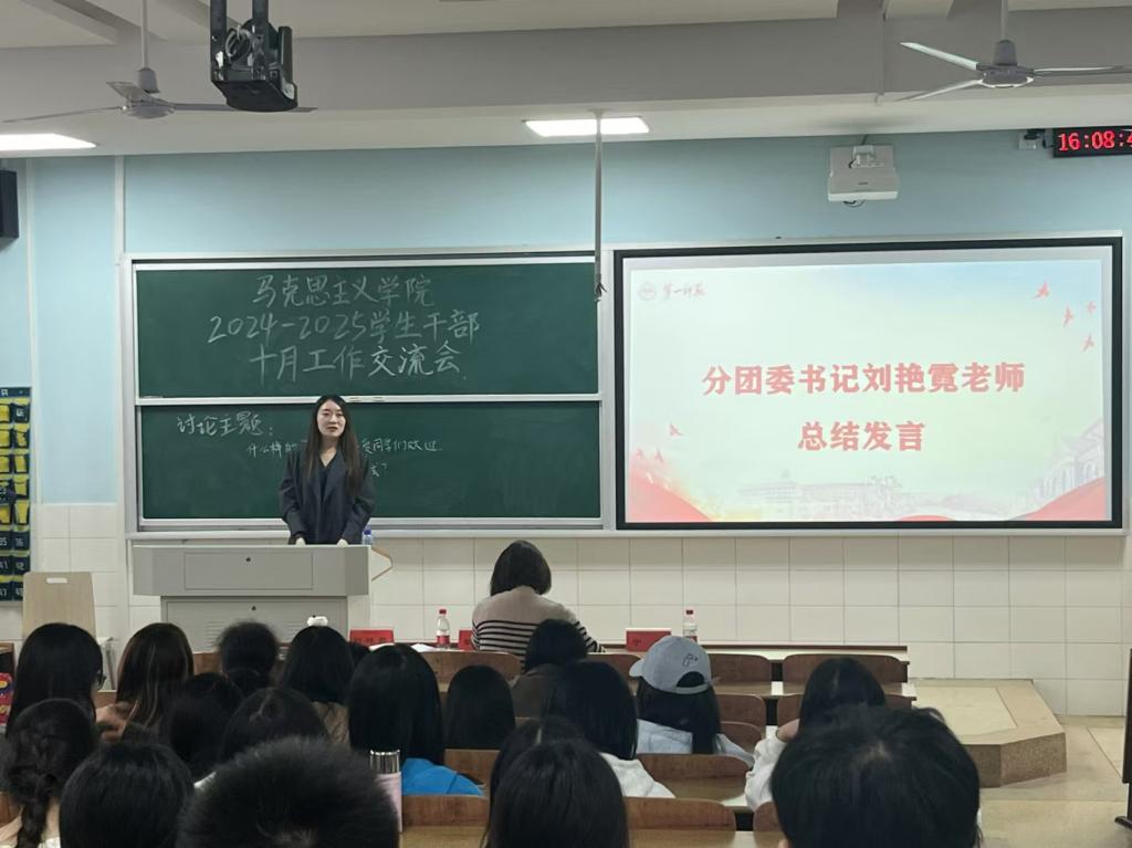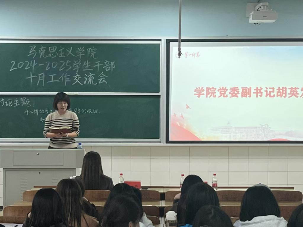 为共同探讨学生工作的新思路、新方法,进一步提高学生干部的工作能力和服务水平,伟德国际1946于10月8日下午在怀中南301教室召开学生干部工作交流会,院党委副书记胡英、学工办主任于澎、分团委书记刘艳霓出席,全体学生干部参会。本次交流会由学习部负责人邹书敏主持。