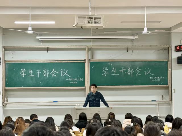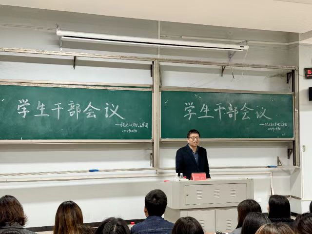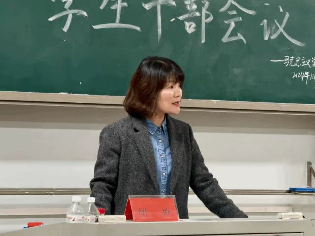学工办主任于澎布置具体工作安排。于老师着重强调了校园安全的重要性,指出“安全问题无小事,必须给予高度重视”。他要求,学生干部要发挥带头表率作用,严格遵循学校关于校园安全的纪律规定;学生干部要尽职履职,做好寝室和班级管理工作;学生干部要成为师生沟通的桥梁,关注同学们的心理状况并及时给予帮助和鼓励。