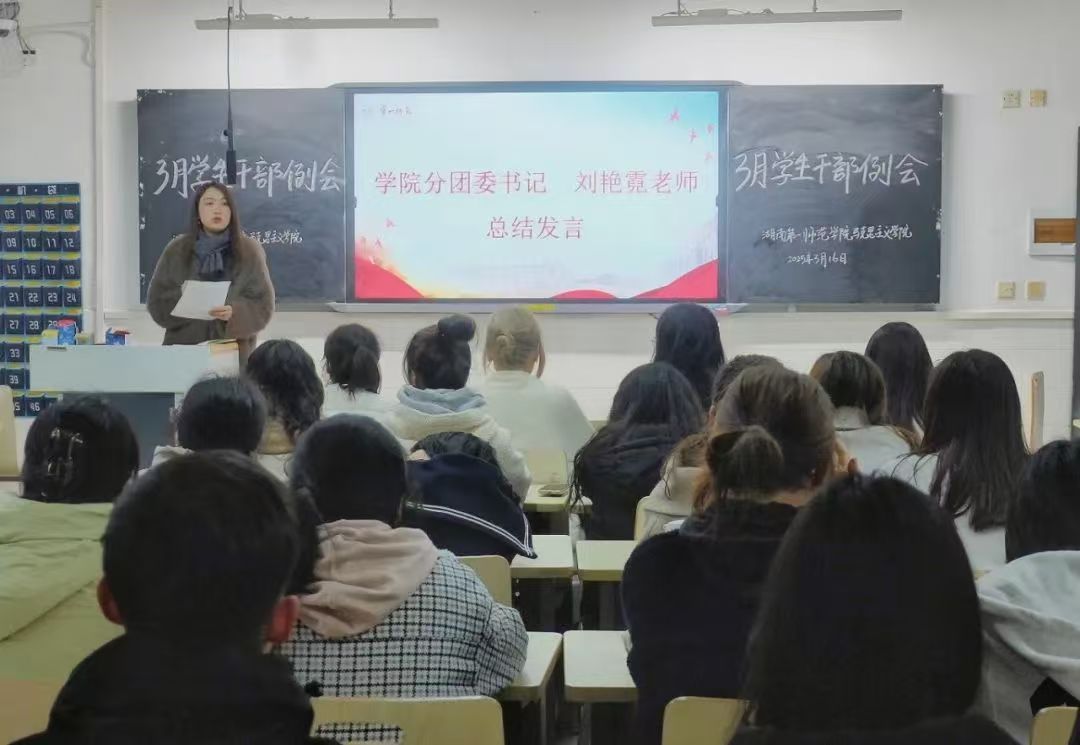 刘艳霓老师在总结发言中,充分肯定同学们前期工作成果。她强调,学生工作要以服务同学为宗旨,打造学院特色品牌。针对近期工作表现与经验分享,刘老师对学生干部提出四点要求:一是深化 “传帮带” 机制,保障工作交接顺畅;二是强化价值引领,增强责任感与使命感;三是完善部门档案管理,确保工作留痕、有据可查;四是加强部门协作沟通,凝聚工作合力。