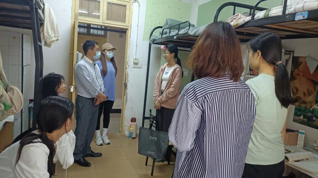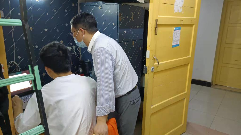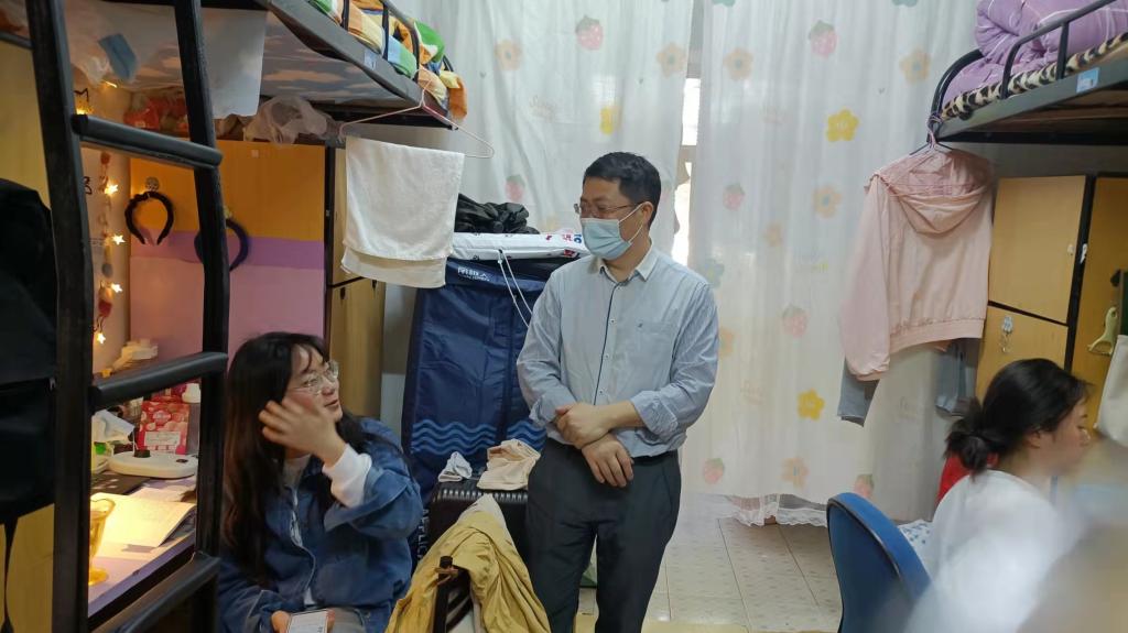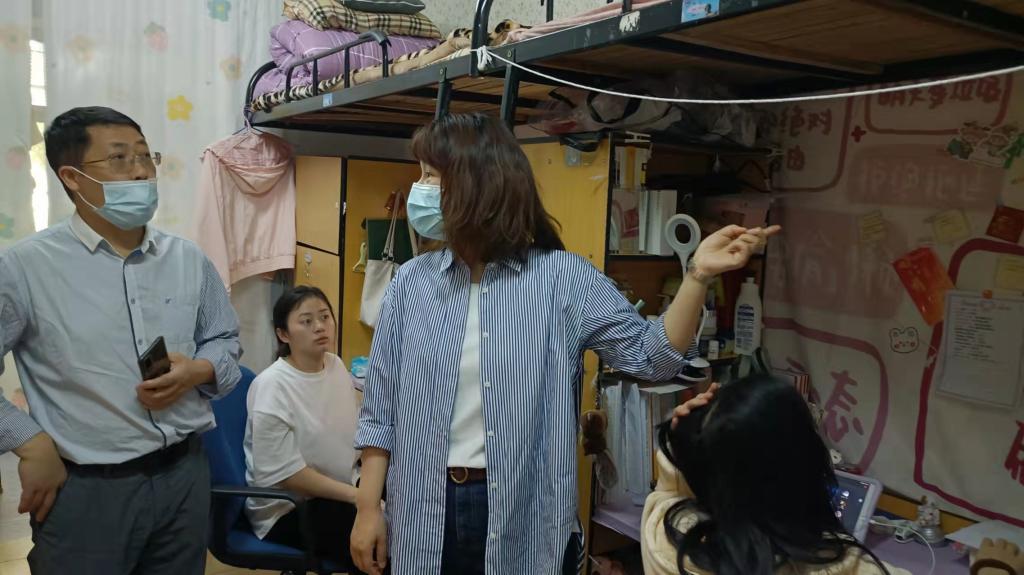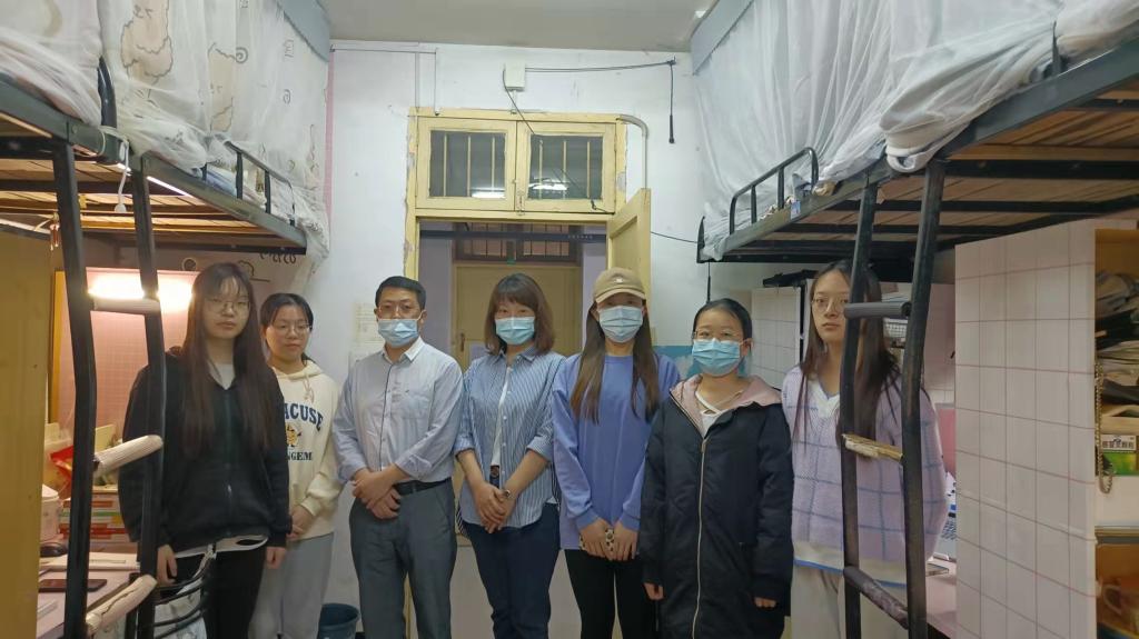 4月9日上午,为加强疫情防控期间学生线上学习管理,保证教学质量,伟德国际1946党委副书记胡英、副院长王竹苗、学工办刘艳霓走访了11栋女生寝室和13栋男生寝室,检查学生网课学习情况,了解学生网课学习的存在问题,提醒同学们要克服困难,增强自我约束力,提升网课学习效果。亲切询问同学们是否有困难,有哪些困难需要学院帮助解决。每到一个寝室,老师们都提醒学生们每天开窗通风,注意寝室卫生,增强日常锻炼,每天早睡早起,保障网课学习期间的身心健康。