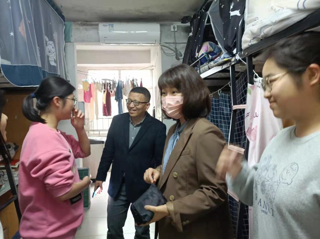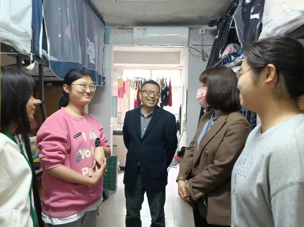 4月29日下午,伟德国际1946党委书记阮东彪、党委副书记胡英、学工办刘艳霓走访了11栋学生宿舍。与同学们亲切交谈,就学业情况进行了深入交流,鼓励同学们勤勤恳恳地学习好专业基本知识,扎扎实实地掌握好教学实践技能,多多参与各类技能竞赛与活动,不断提升自己,同时在此基础上也要切实保证自身作息时间与饮食规律,劳逸结合,要走出宿舍、走进操场,积极进行体育锻炼。