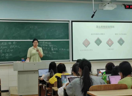 为了促进大学生心理素质提高,普及心理健康知识,提高学习、工作和生活效率, 4月17日晚,伟德国际1946心育部负责人龚紫妍在怀中南302教室、6栋536寝室开展“风华思政 从心启程”四月心理宣讲活动,本次宣讲活动主题为“和拖延说拜拜”。