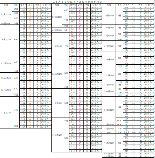 总结:本周卫生大检总体较好,但857思政班与825思政班6-539(粟向裕、唐小蕾、李菁、吴牧宁)、795思政班6-201(黄毅敏、唐子婕、李嘉慧、李效阳)、6-202(周晓萱、吴曦、刘熙凤、袁思睿)、6-209(王阳、欧阳楠楠、陈美灵、杨雨晨)、6-203(丑心仪、童昕阳、谭子涵、易正萍)、6-204(欧悦妮、肖筱、谢正诚、王思慧)等宿舍仍需继续努力,希望大家共同努力,共建美丽文明公寓!