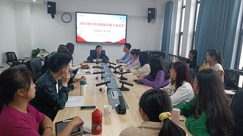 陈明介绍了近段时间学院总体工作安排,并鼓励同学们积极参与学院各项活动。阮东彪介绍了我院的党建特色活动,并鼓励大家积极向党组织靠拢。胡英介绍了我院的特色学生活动,并提议大家带动本科生学习。王竹苗介绍了学院的教学典型做法,并鼓励学生积极好学、虚心求教。
