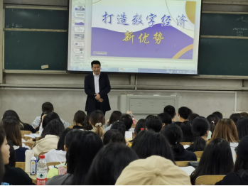 5月12日晚,学校党委委员、副校长曹兴教授在润寰南201多媒体教室为2021级数学与应用数学、体育专业班级本科生主讲“打造数字经济新优势”的“形势与政策”报告。曹校长从适应数字时代的战略抉择、发展数字经济的成果显著、激发数字经济的潜能活力三个方面解读了中国发展数字经济的优势,认为互联网、大数据、云计算、人工智能、区块链等技术加速创新,日益融入经济社会发展各领域全过程,各国竞相制定数字经济发展战略、出台鼓励政策,数字经济发展速度之快、辐射范围之广、影响程度之深前所未有,正在成为重组全球要素资源、重塑全球经济结构、改变全球竞争格局的关键力量。曹校长讲课语言朴实,理论前沿,课件图文并茂,讲解案例生动,同学们深受启发。