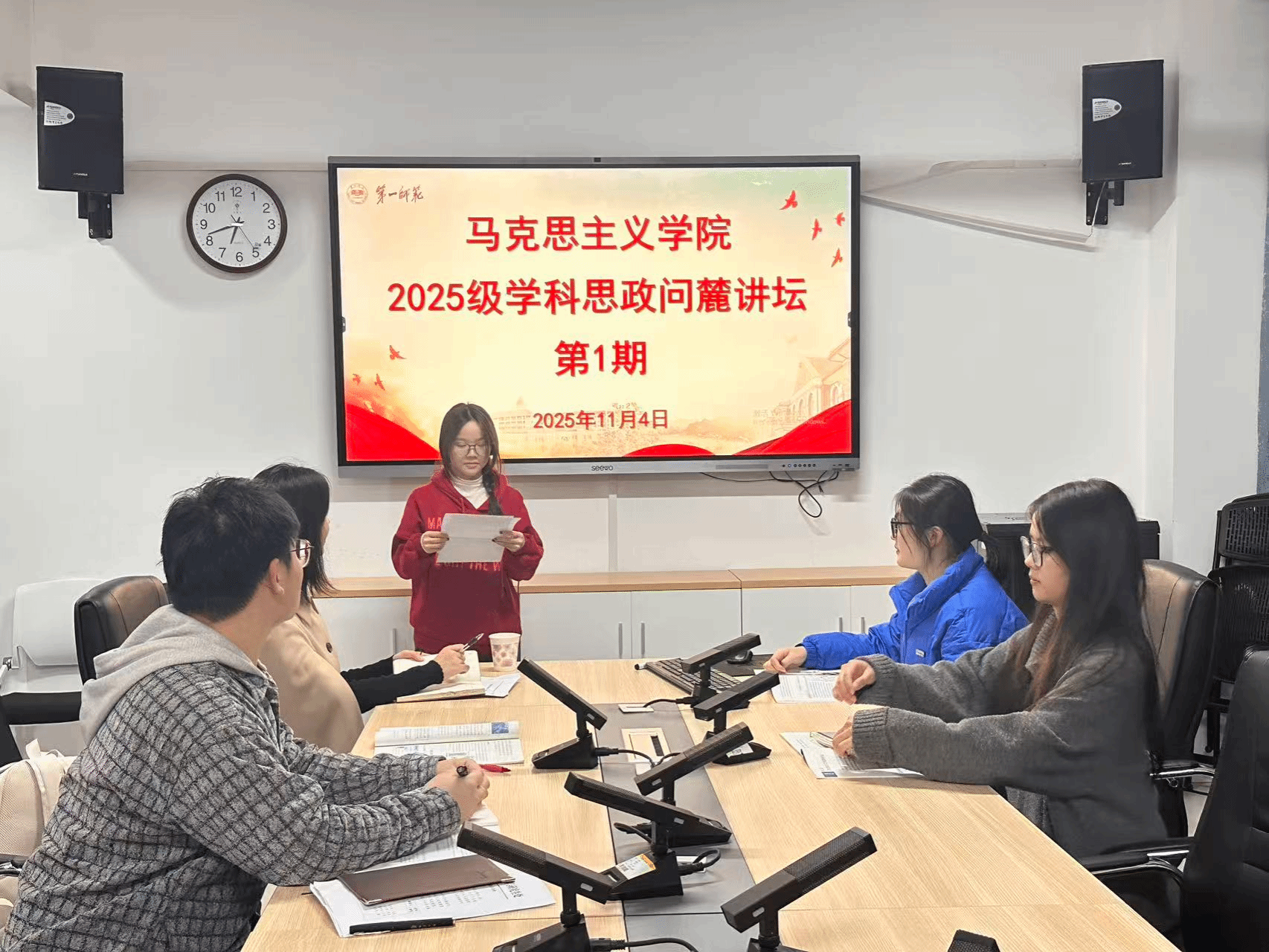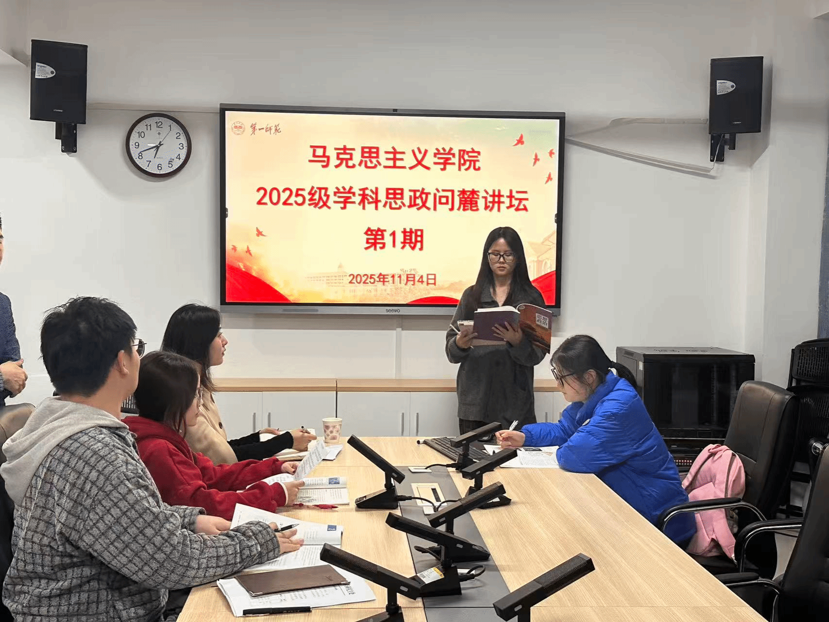 为提升2025级学科思政专业硕士研究生对高中政治教材的理解与教学实践能力,11月4日下午,伟德国际1946于百熙楼1010会议室举办“思行先锋”之首期“问麓”讲坛,聚焦“新民主主义革命的教学设计”,由陈攀文、刘慧芳老师指导,该专业全体硕士研究生参与。